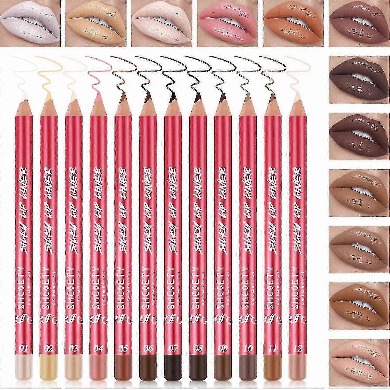 12 Colors Matte Nude Lipstick Lip Liner Pencil Set, Highly Pigmented Waterproof