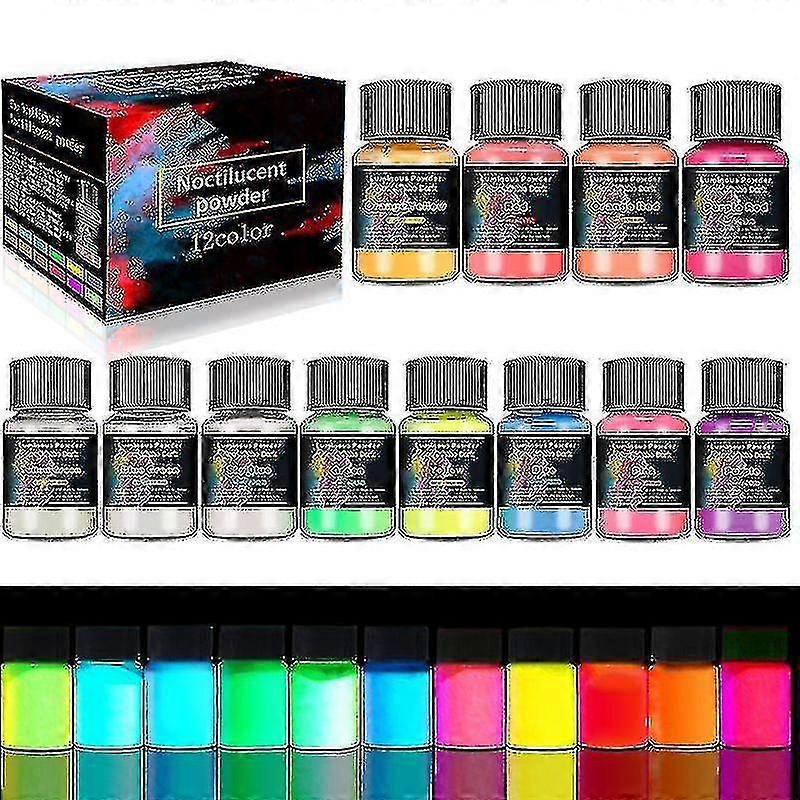 12 Colour Glow In The Dark Pigment Powder - Epoxy Resin Luminous Powder Skin Safe Long Lasting Self Glowing Dye