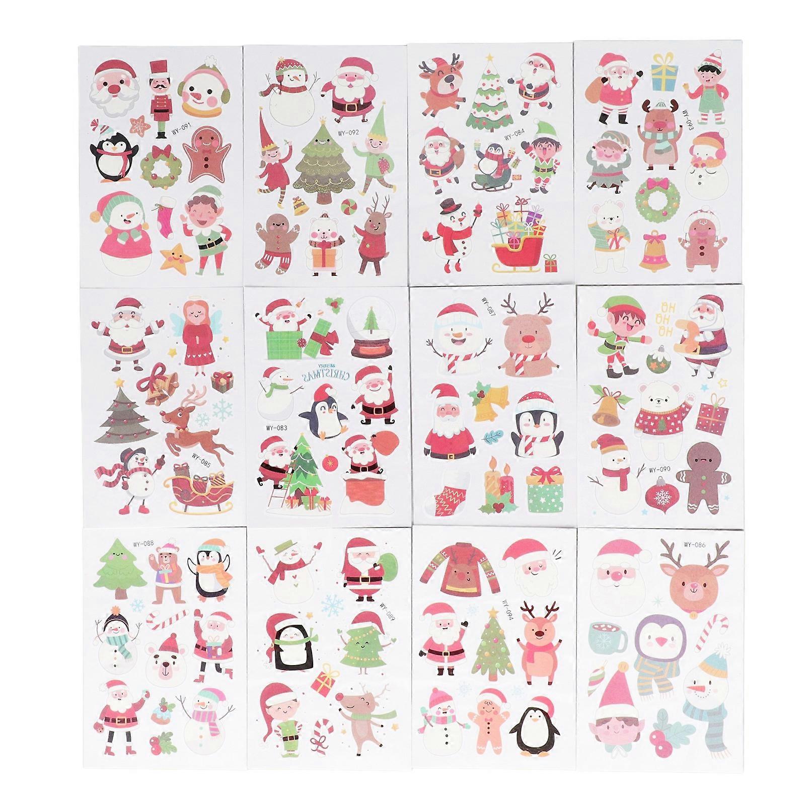 12 Sheets Christmas Luminous Tattoo Stickers Waterproof Long Lasting Skin Friendly Luminous Christmas Temporary Tattoos