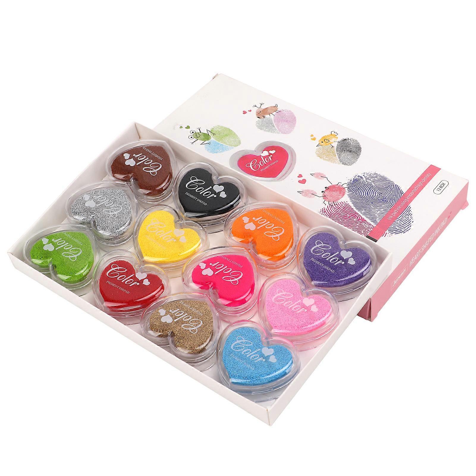 12 Color Stamp Pad Colorful Small Love Candy Color Washable Carving Inkpad Rubber Stamp DIY Stamp for Kid Gifts