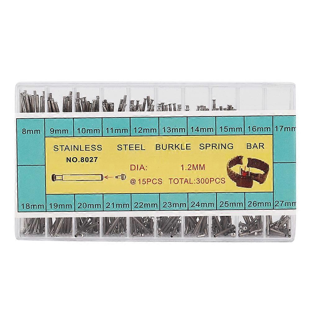 1、Professional watch spring bar, special designed for watch repairing and making. 2、Including 20 different sizes, each grid has 15pcs, 300pcs in total to meet your needs. 3、Made of quality alloy steel material, durable and sturdy, having long service time. 4、Come with a convenient storage box, lightweight and portable. 5、Suitable for watch makers and watch repairing workers to use. Features: Professional watch spring bar, special designed for watch repairing and making. Including 20 different sizes, each grid has 15pcs, 300pcs in total to meet your needs. Made of quality alloy steel material, durable and sturdy, having long service time. Come with a convenient storage box, lightweight and portable. Suitable for watch makers and watch repairing workers to use. Specification: Condition: 100% Brand New Material: Alloy Steel Size(mm): 8  9   10    11   12   13   14   15   16   17   18   19   20   21    22   23   24   25   26    27 Thickness: Approx. 1.2mm/0.05in Package List: 1 x Box of Spring Bar