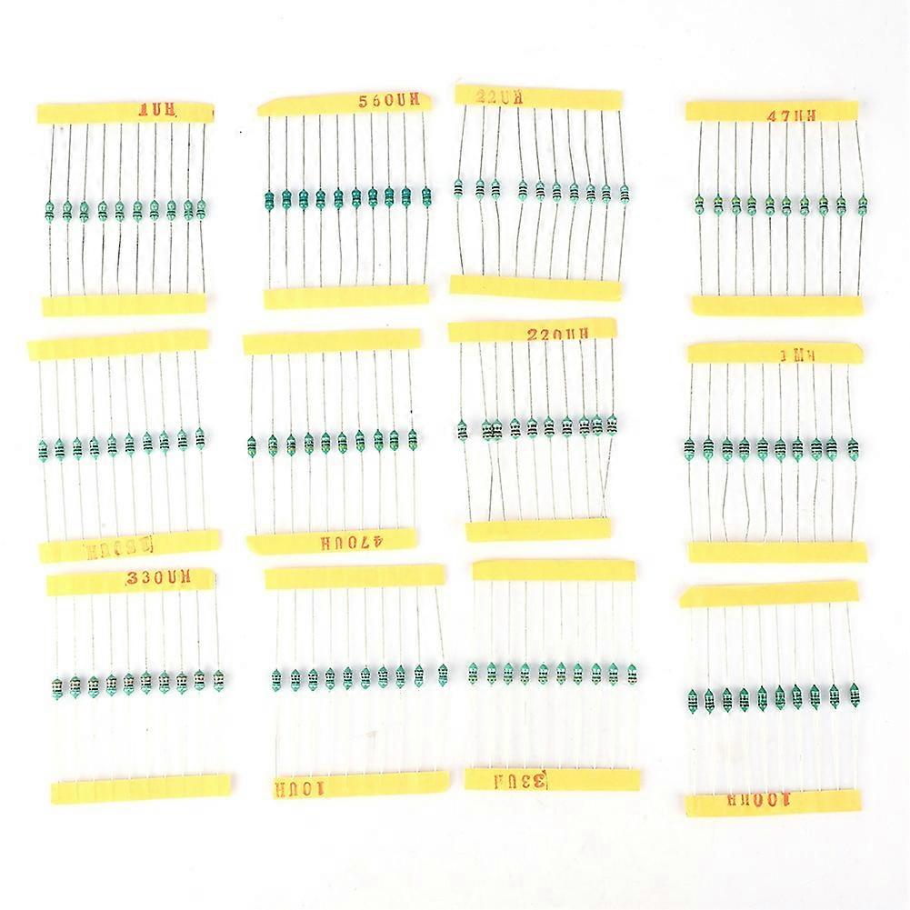 120 Pcs Inductor Set 1/4W Color Ring 12 Kinds Inductance 1UH~1MH