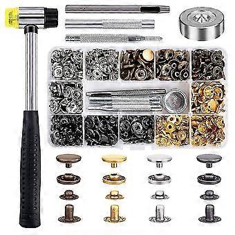 120pcs Metal Snap Buttons 4 Colors (12mm) + Hammer, For Leather Crafts Jacket Wallet Handbag