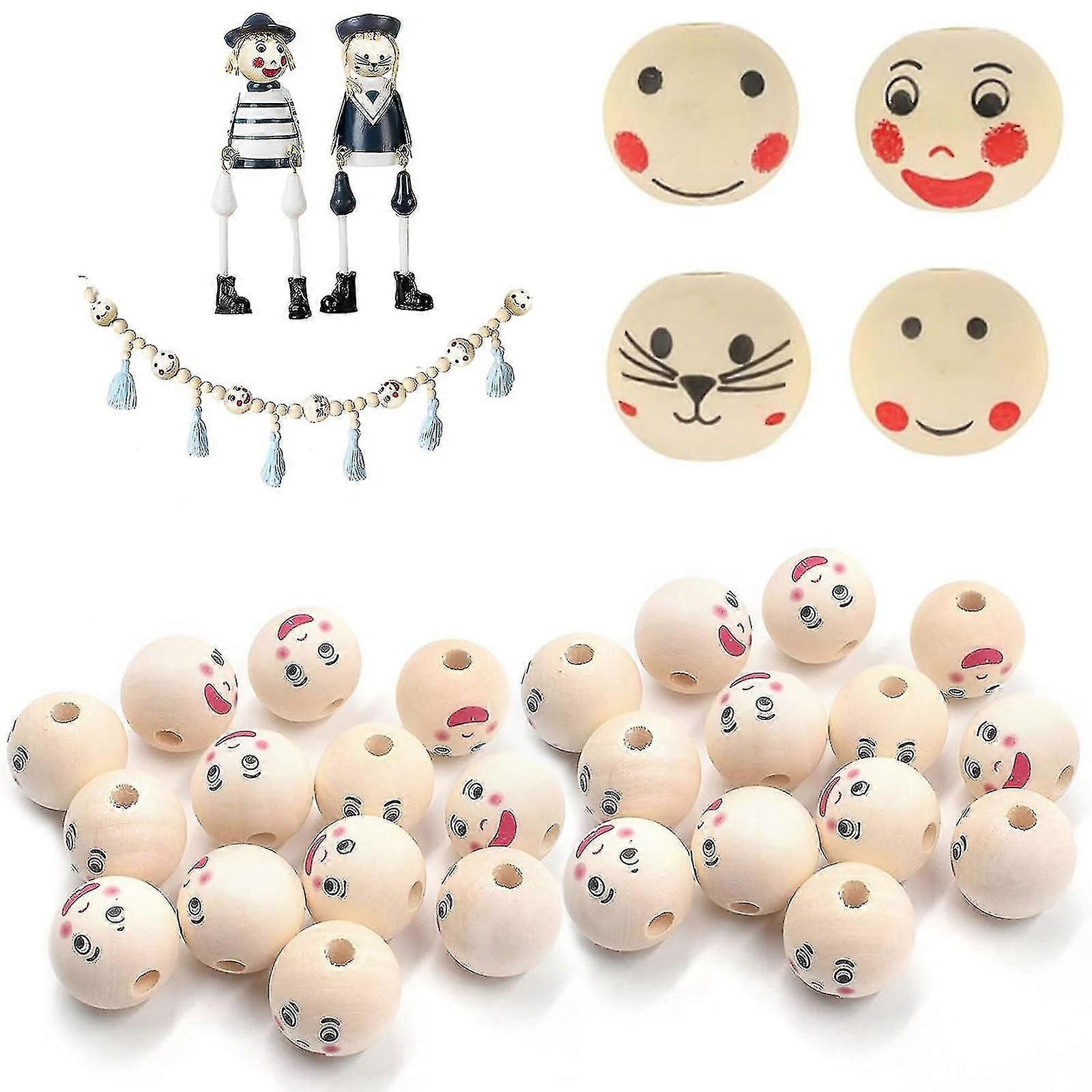 120pcs Natural Wooden Beads with Face Hole for Crafts