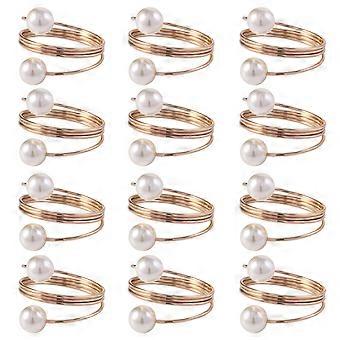 12/20Pcs Faux Pearl Napkin Ring Set Napkin Ring Buckles Metal Spring Napkin Holder Wedding Birthday Table Decoration