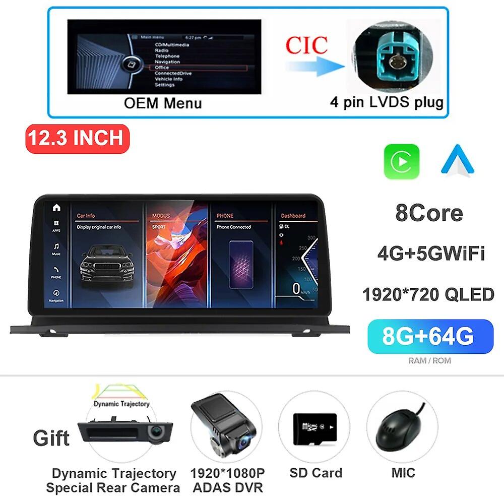 12.3" Car Radio Carplay Player Android 13 For Bmw 5 Series Gt F07 2009 - 2016 Cic Nbt System Gps 4g Navigation Wireless Qled Hd