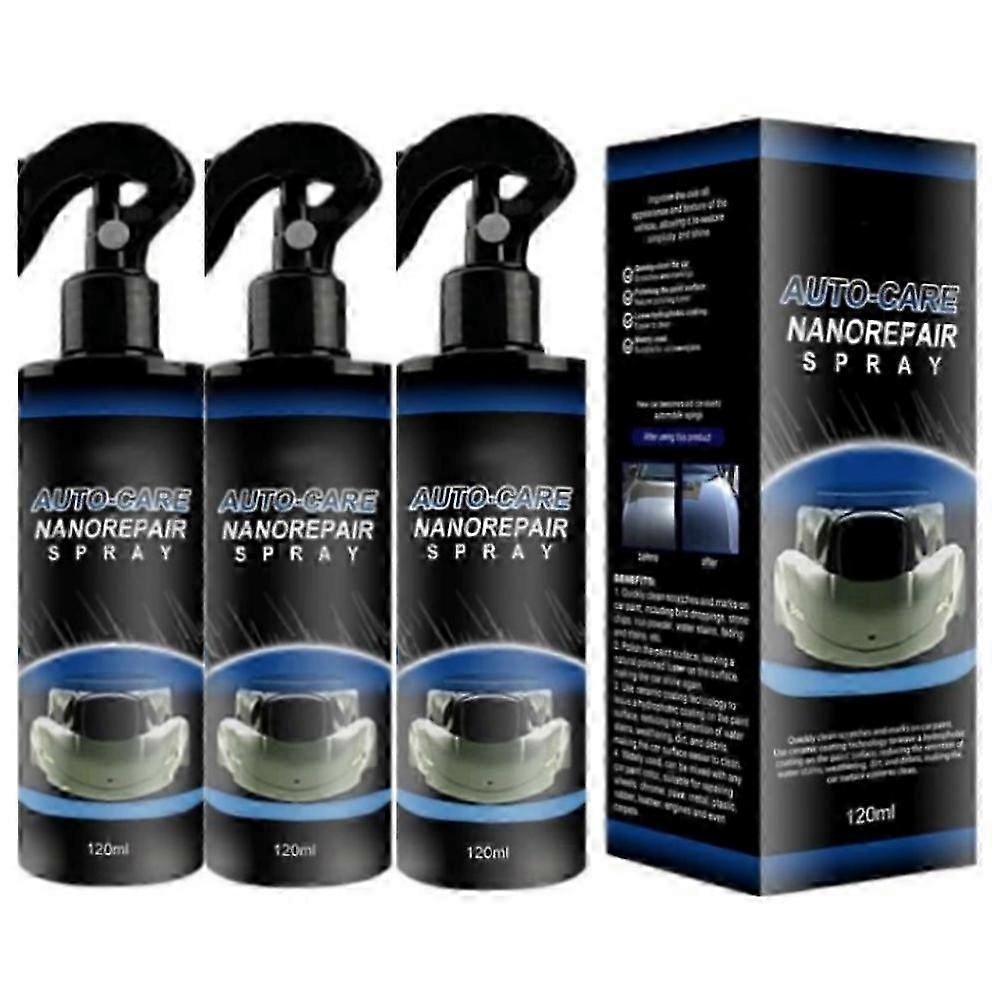 Auto Care Nano Repair Spray, Car Nano Repairing Spray, Fast Repairing Scratch Spray, Scratch Removal for All Car Body Freatures:1.Ceramic coating for cars form a protective film on the surface of the plastic part.2.Leaves a shiny glossy finish for impressive results without waxing the car.3. Prevents re-oxidation and fading. Specification:Name: Auto care Nano Repair SprayNet Weight: 120mlGloss: Specular gloss with excellent high glossUses: all types of car paints and finishes Package Includes:1/2/3 pcs x AutoCare Nano Repair Spray (120ml)1pc x Thickened Sponges1 pc x Towels How to Use:1. Wrap the cloth over coating sponge.2. Put coat liquid on the cloth.3. Spread the liquid on the car Headlights.4. Use towel to wipe and polish sponge over the coated fabric.