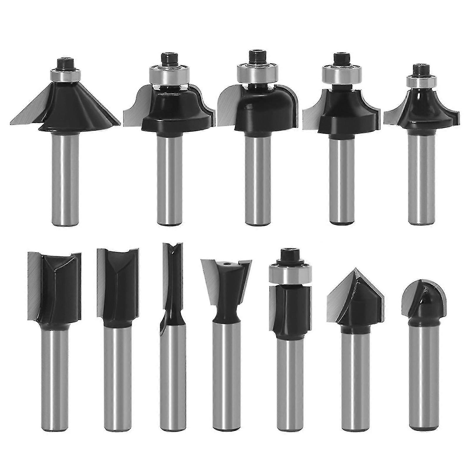 12pcs Tungsten Carbide Router Bits Set Trimming Straight Milling Cutter Wood Bits With 8mm Shank For Cutting Woodworking Black