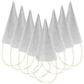 12PCS Glitter Cone Party Hats Triangle Birthday Hats for Kids and Adults Party Decorations (Silver)