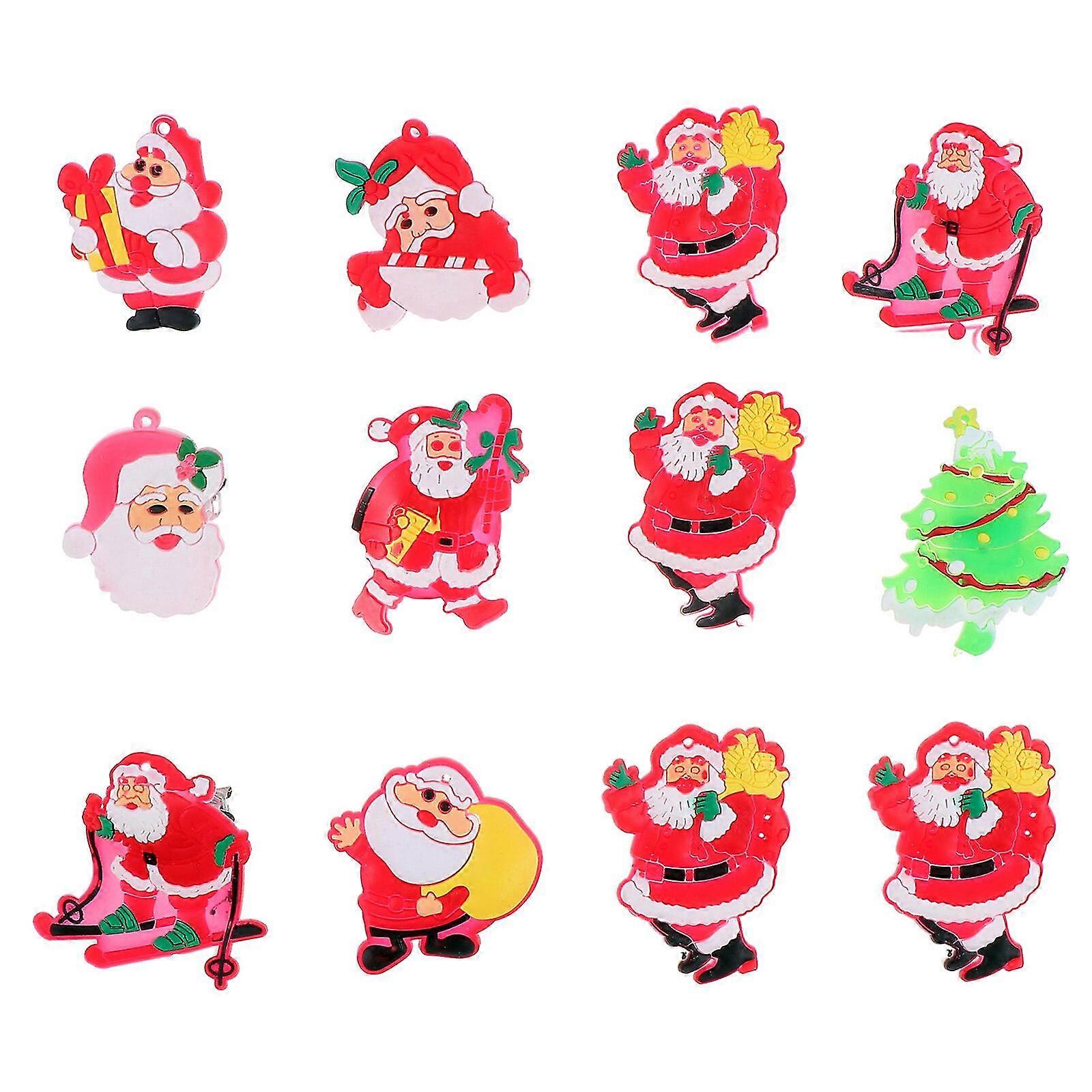 12pcs Christmas Cartoon Elk Santa Glowing Breastpin Clothes Brooches Accessories