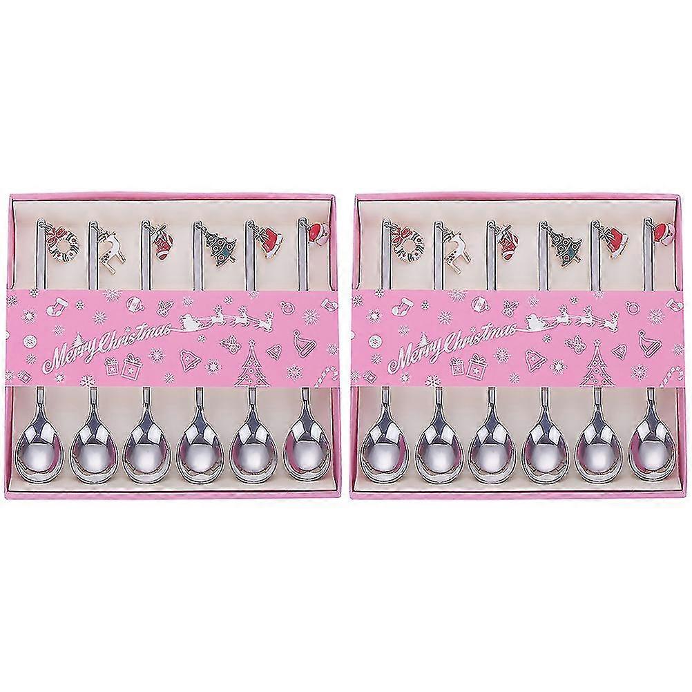 12pcs Christmas Pendant Spoon Stainless Steel Spoon Stirring Spoon Dessert Spoon