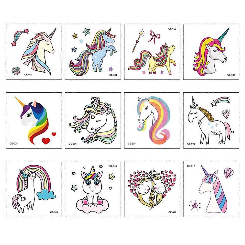 12PCS Waterproof Tattoos Stickers Unicorn Cartoon Temporary Tattoos for Kids Unicorn Party Favors Birthday Decorations Supplies