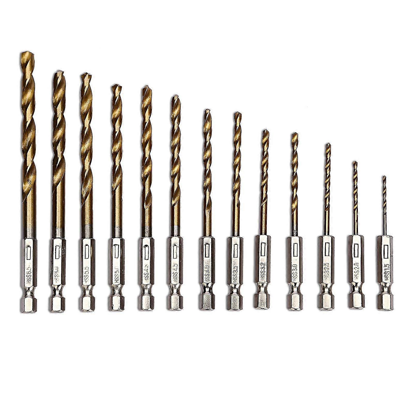 13 Pcs Hss Twist Drill Bit Set 13pcs- Titanium Coated Hex Shank Drill Bits 1.5-6.5mm For Metal, Wood, Plastic