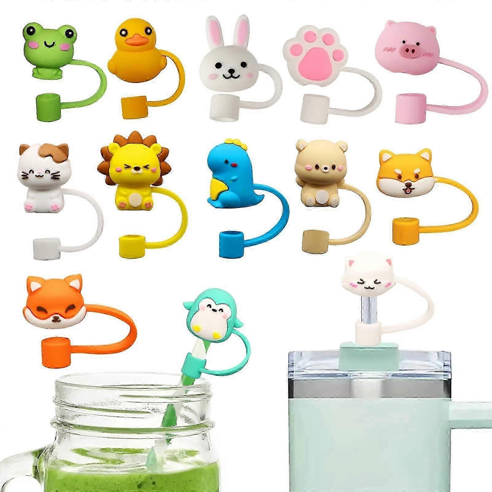13pcs Cartoon Silicone Straw Tips Cover, Adorable Drinking Straw Tips Lids,Animal Fruit Straw Caps Covers Straw Plug