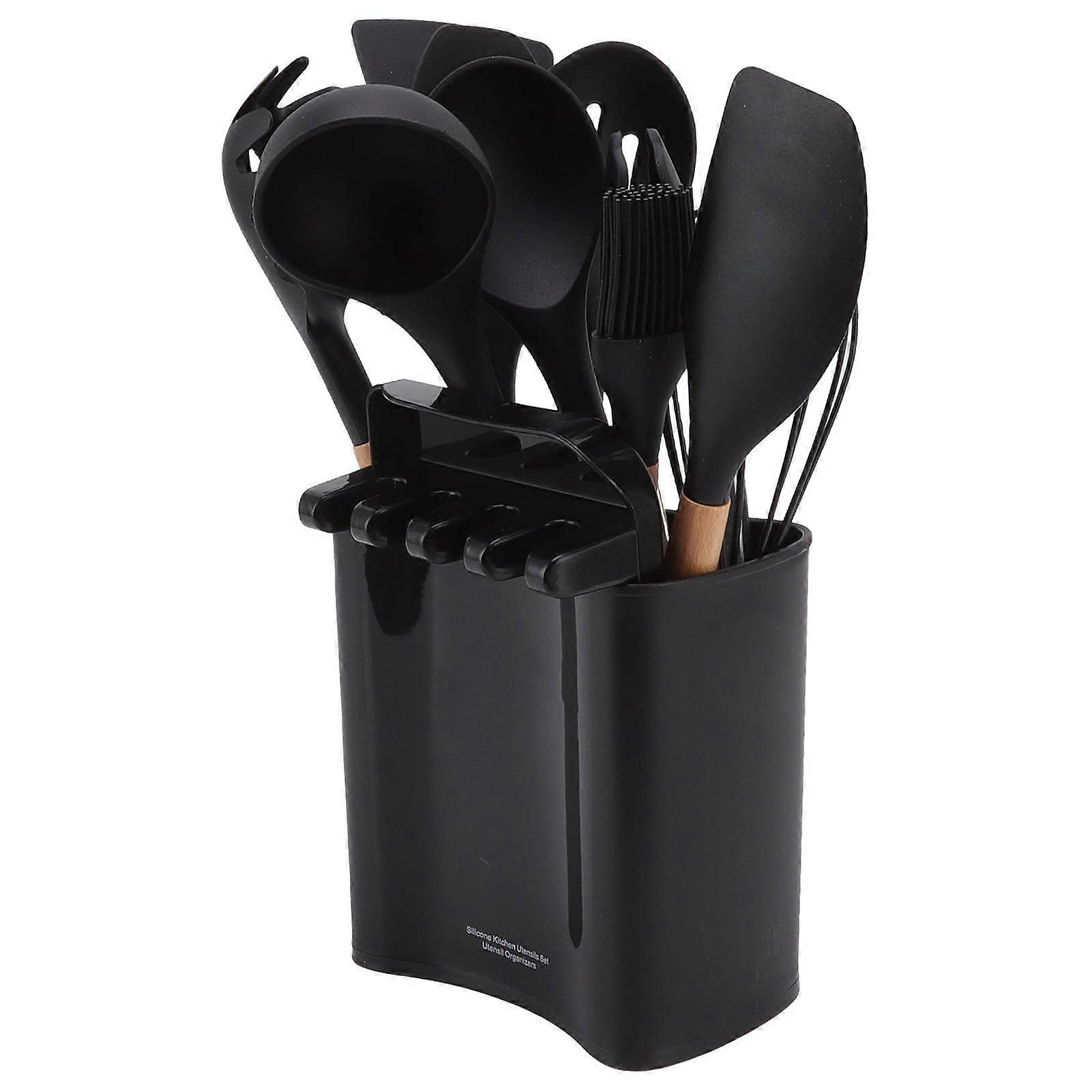 13pcs Camping Cookware Set Heat Resistant Wooden Handle Safe Odorless Black Picnic Cookware Kit with Rack Storage Box