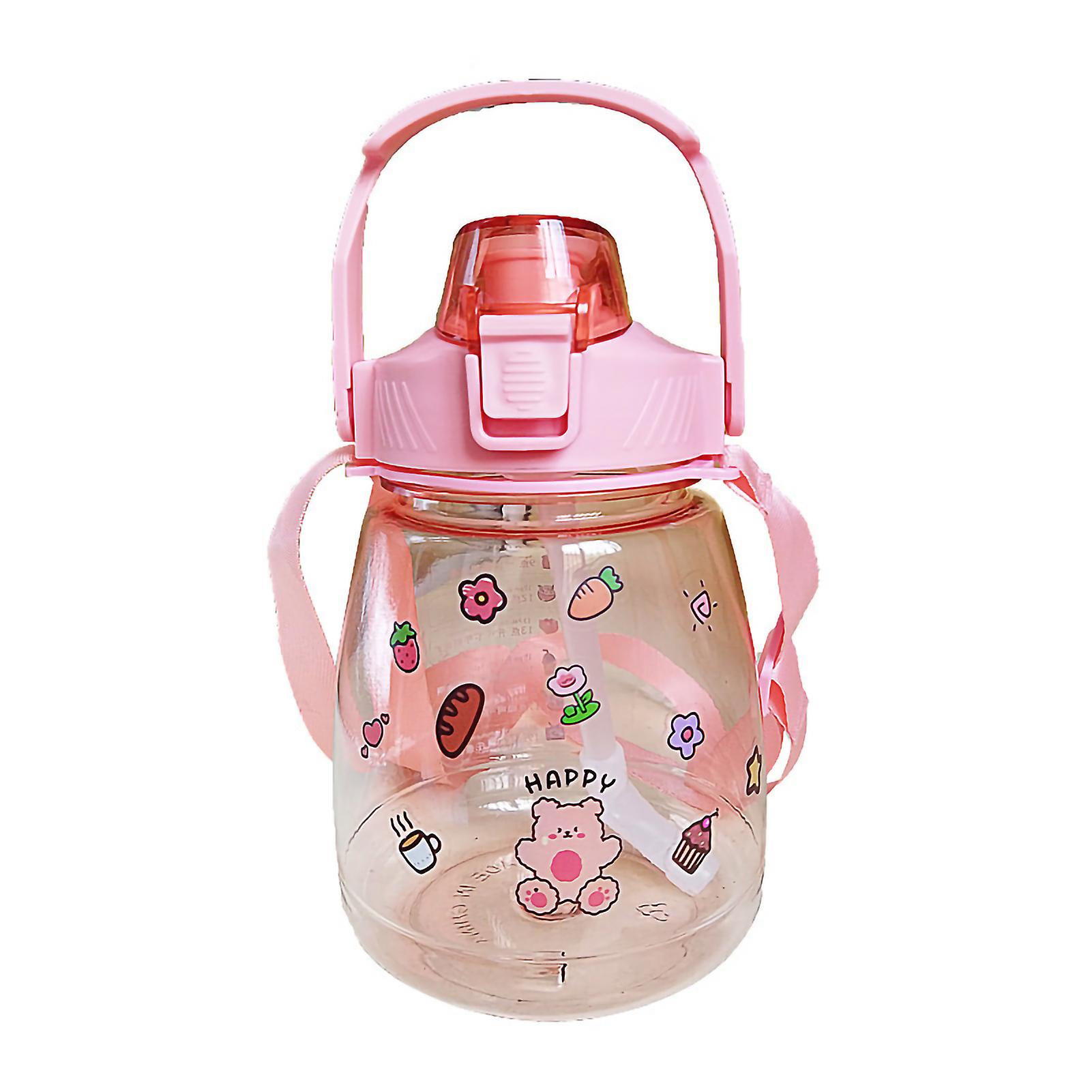 1300ML Large Capacity Water Bottle with Straw Strap Portable Leakage Prevention Kids Water CupPink