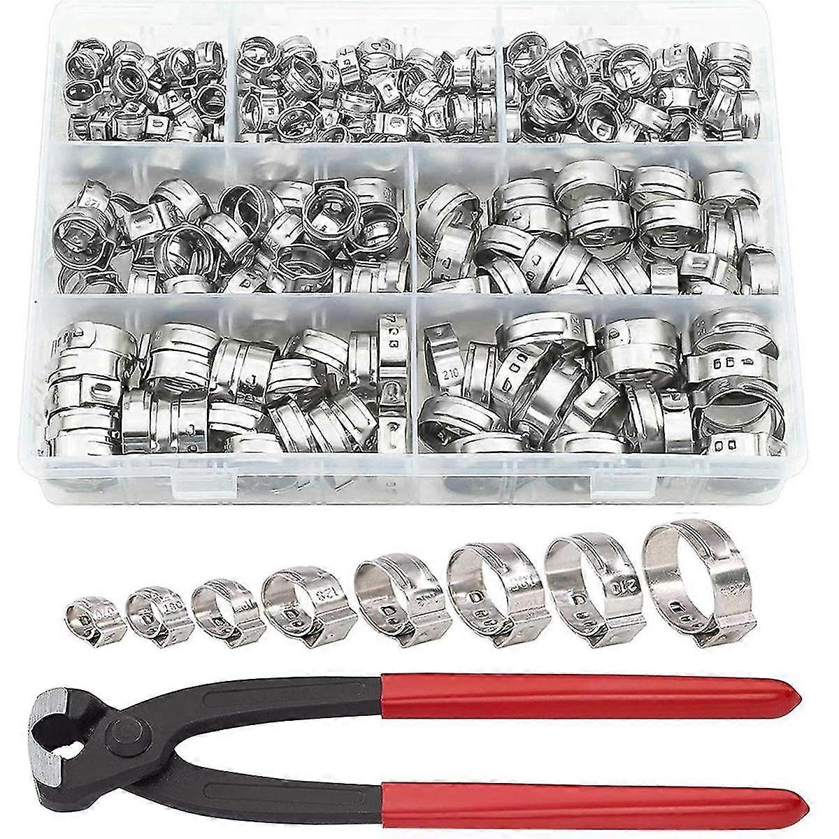 131pcs Single Ear Hose Clamps, Stainless Steel Pex Clamps, Stepless Clamps For Pipe Fittings, Compression Ring Clamps