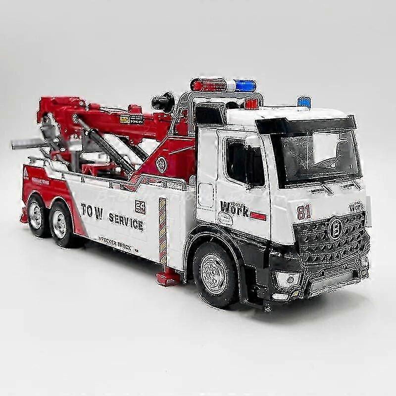 1:32 Diecast Model Vehicle Toy Large Double Hook Traffic Road Rescue Service Truck Miniature Replica With Sound & Light Big