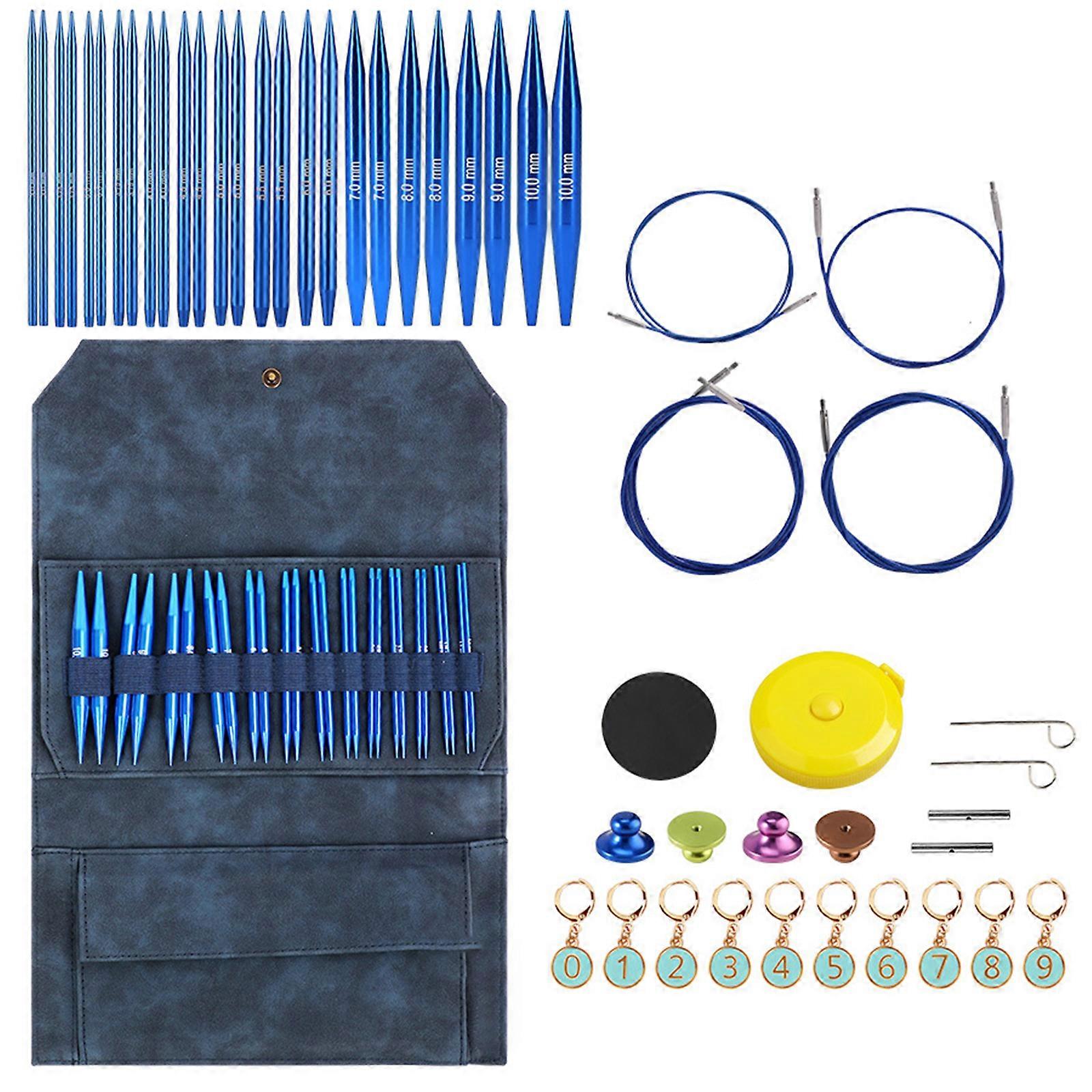 13Pairs Aluminum Interchangeable Circular Knitting Needle Set 3.0mm-10mm with Leather Case for Knitting Weaving Sweater Navy