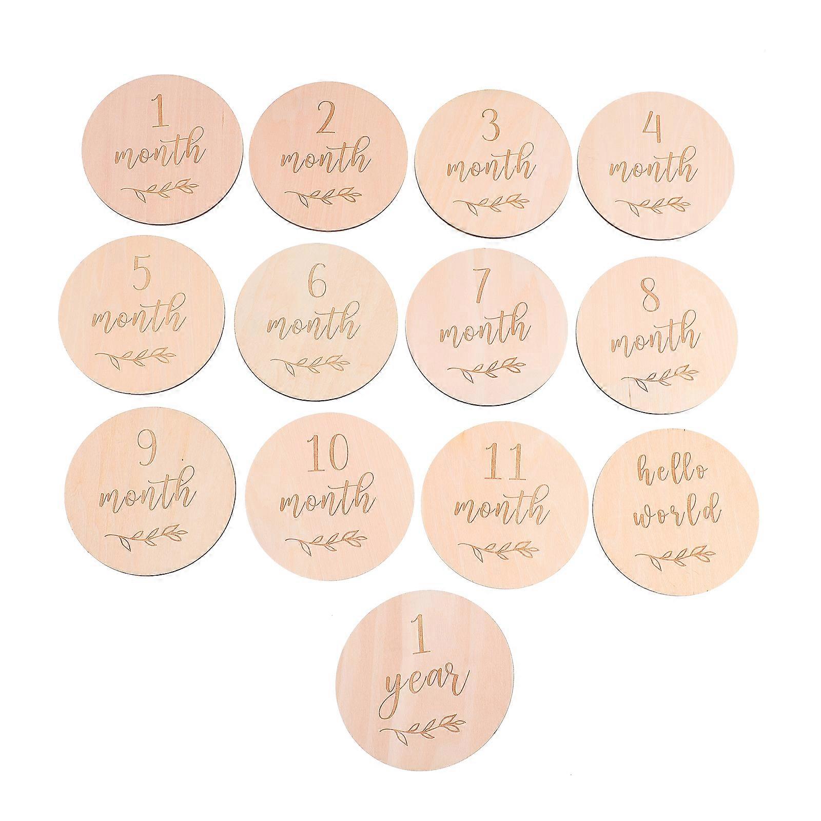 13PCS Wood Baby Monthly Cards Safe Milestone Cards Premium Monthly Milestone
