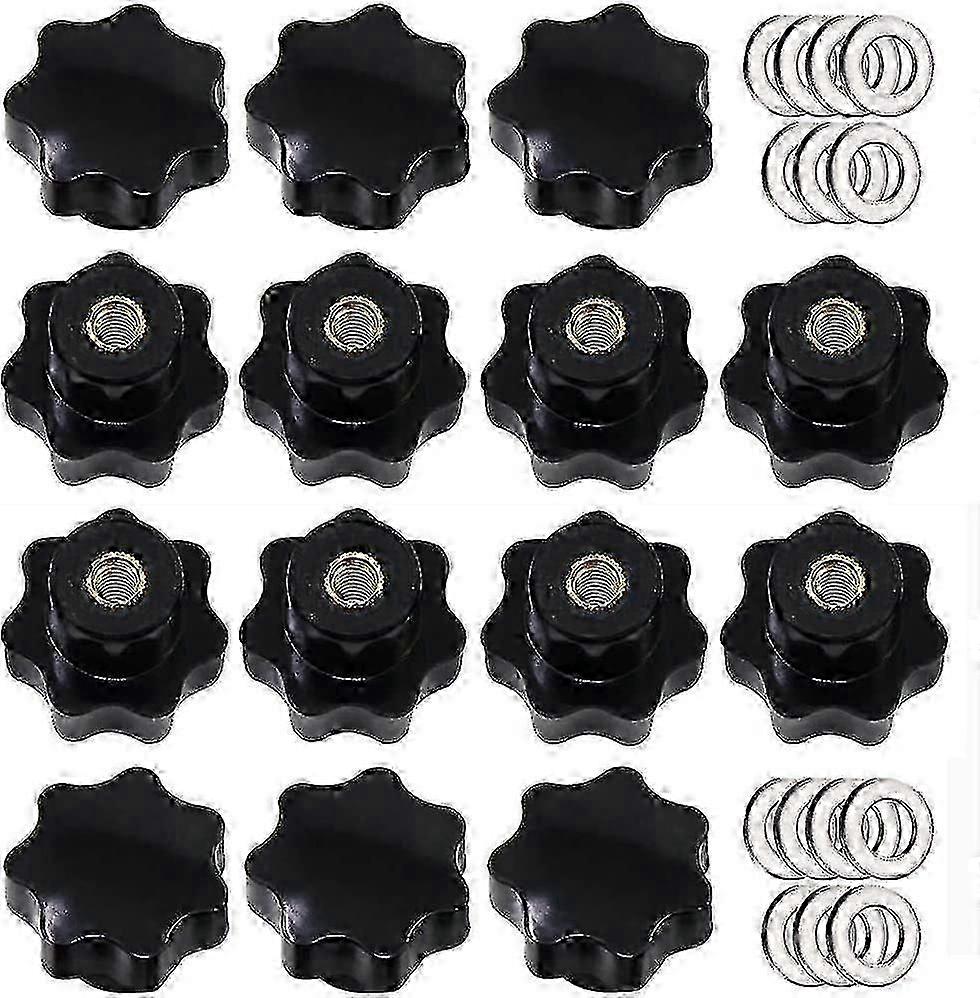 14 Pieces M8 Knurled Thread Clamp Knob, Star Handle, Star Shaped Hand Knobs Black Plastic Clamp Knob With Washers-In stock