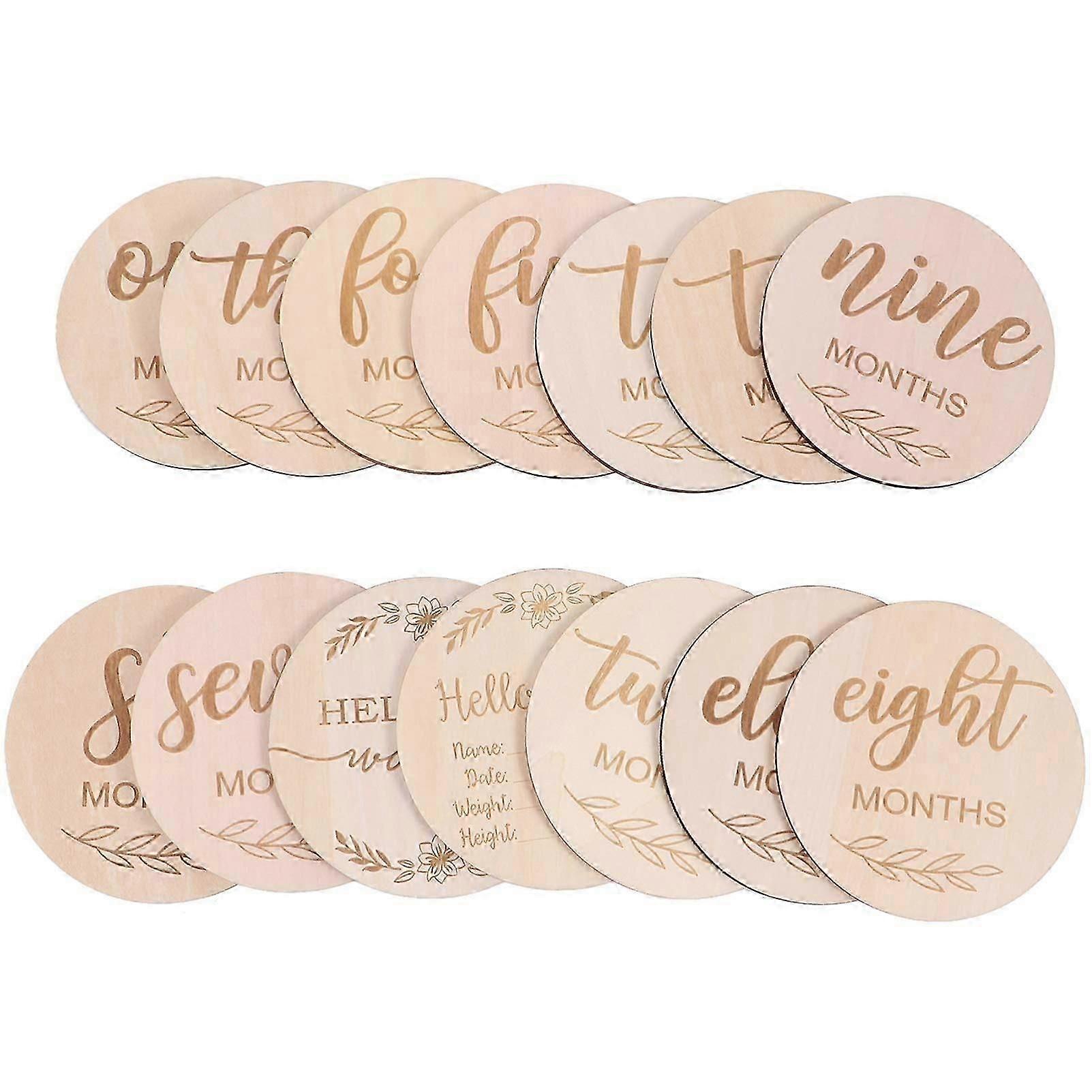 14Pcs Wooden Baby Monthly Milestone Cards, Baby Milestone Discs for Photo Props Baby Shower Gifts