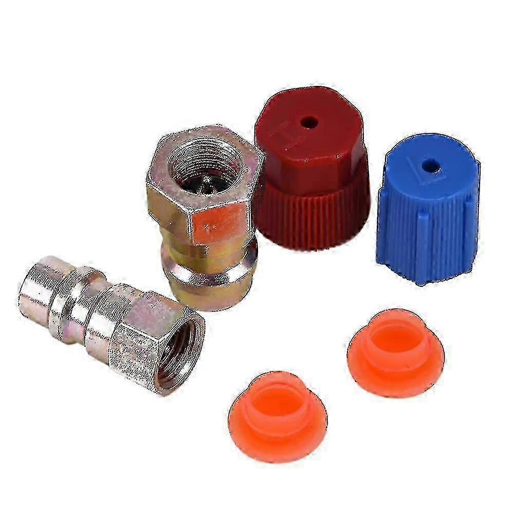 These Low/High side retrofits will convert your old 1/4" R12 charging port and allows you to connect the R134a hose.Features:Made from superior material, has great durability.Good choice for car accessory replacement.Convert your old 1/4" R12 charging port and allows you to connect the R134a hose.Come with removable Schrader valves.Save time and effort, light weigh and easy installation.Specifications:Material: ABS + AlloyRetrofit Length: 28mm / 1.1in (approx)Blue Cap Diameter: 18mm / 0.71in (approx)Red Cap Diameter: 20mm / 0.79in (approx)Package Size: 100 * 80 * 30mm / 3.94 * 3.15 * 1.18inPackage Weight: 71g / 2.5ouncesNote: The real color of the item may be slightly different from the pictures shown on website caused by many factors such as brightness of your monitor and light brightness.Package List:1 * 7/1620UNF (1/4") R12/R134a Low Side Retrofit1 * 7/1620UNF (1/4") R12/R134a High Side Retrofit1 * Blue A/C System Cap1 * Red A/C System Cap2 * Removable Valves
