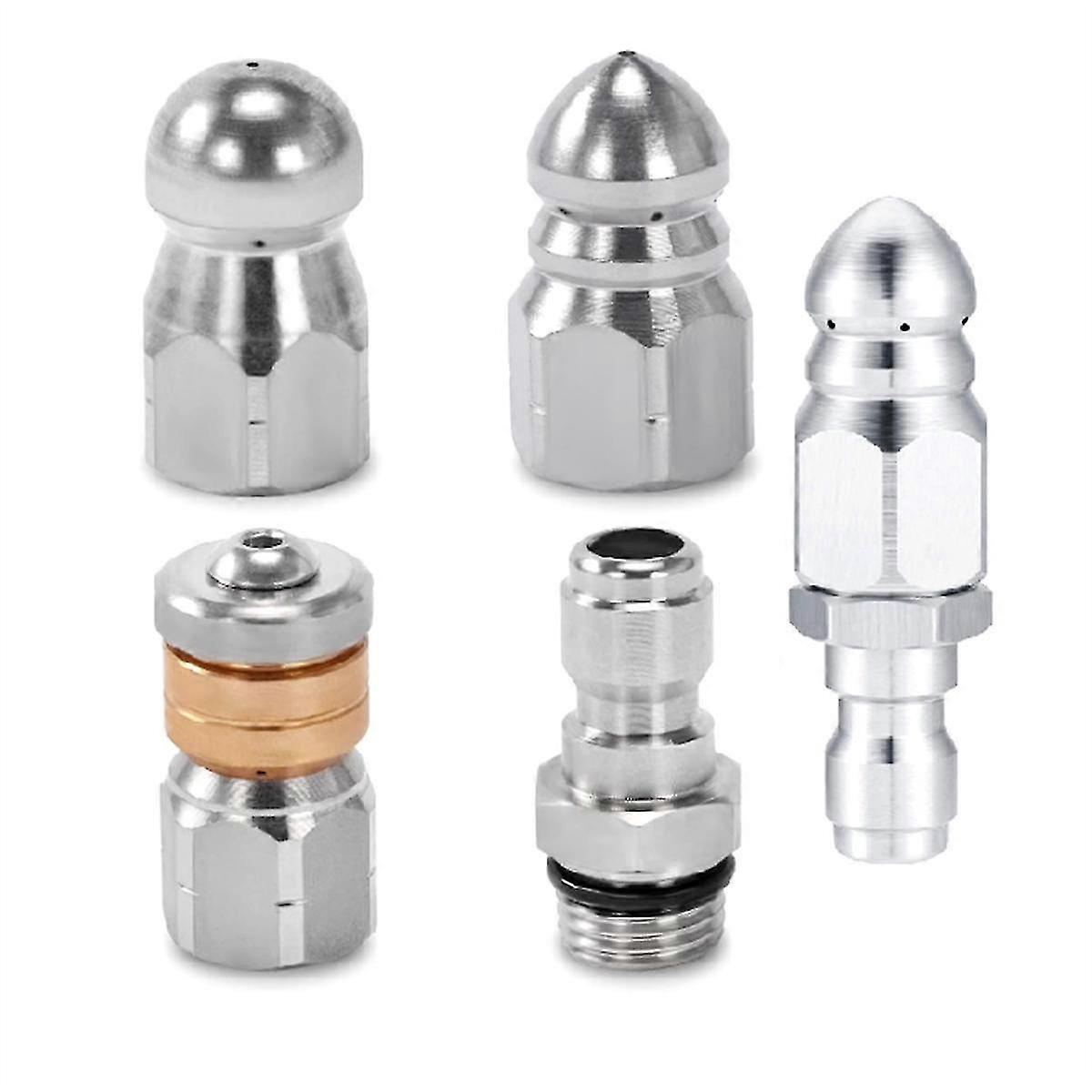 Designed for Versatility: Our pressure washer sewer jetter nozzle serves as an efficient cleaning tool for both outdoor and indoor applications. Utilize it for general sewer, drain cleaning, industrial pipe cleaning, tube cleaning, and more. This high-performing tool is not only perfect for homeowners but is also an Perfect choice for professional cleaners, thanks to its wide range of usability. Superior Performance with Robust Construction: We know sturdiness is key for an efficient clean-up process. This is why our kit is crafted from top-grade stainless steel, ensuring wear-resistance and a durable build. The resilient material also prevents corrosion, promising a long lifespan. With a working pressure of up to 5000 PSI, you could expect exceptional performance with every use. Efficient Drain Unblocking: Deal with blockages effortlessly. These nozzles are designed to smoothly navigate the bends and reach blockages in the drain, blasting obstructions like oil blocks, sand, and other debris for efficient cleaning. These Drain Jet Nozzles fit most pressure washer , making it a versatile accessory for your cleaning tasks. Comprehensive Package: Our kit offers high compatibility which includes 1/4inch NPT Drain Jet Hose Nozzle with 1 Front Jet and 6 Rear (Orifice size 6.5), 1/4inch NPT Button Nose Jet Hose Nozzle with 1 Front Jet and 3 Rear (Orifice size 4.0) and 1/4inch NPT Rotating Flat Nozzle with 3 Backward Rotating Sprays (Orifice size 4.5). The kit also includes a 1/4inch quick connector and a 1/4inch male NPT thread. Colour:Silver Material:Stainless steel Package Contents: 5 x Sewer Jetter Nozzle Only the above package content, other products are not included. Note: Light reflection and different displays may cause the color of the item in the picture a little different from the real thing. The measurement allowed error is +/- 1-3cm.