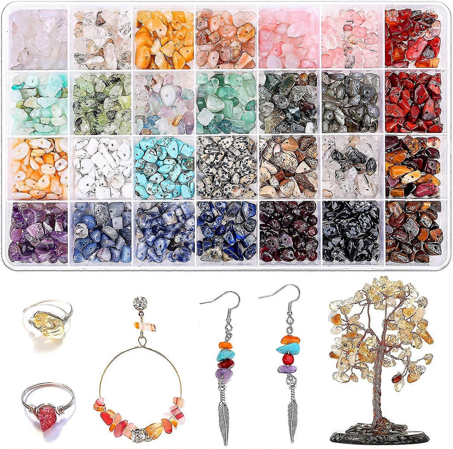 1400 Pcs Crystal Jewelry Making Kit,28 Colors Gemstone Beads For Jewelry Making, Irregular Stone Beads For Necklace Bracelet Ring Earring Making