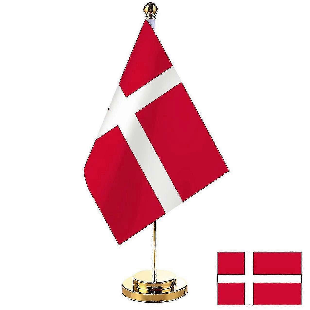 14x21cm Mini Flag Of Denmark Banner Meeting Boardroom Table Desk Stand Stainless Steel Pole The Danish Flag National Design-yuyu