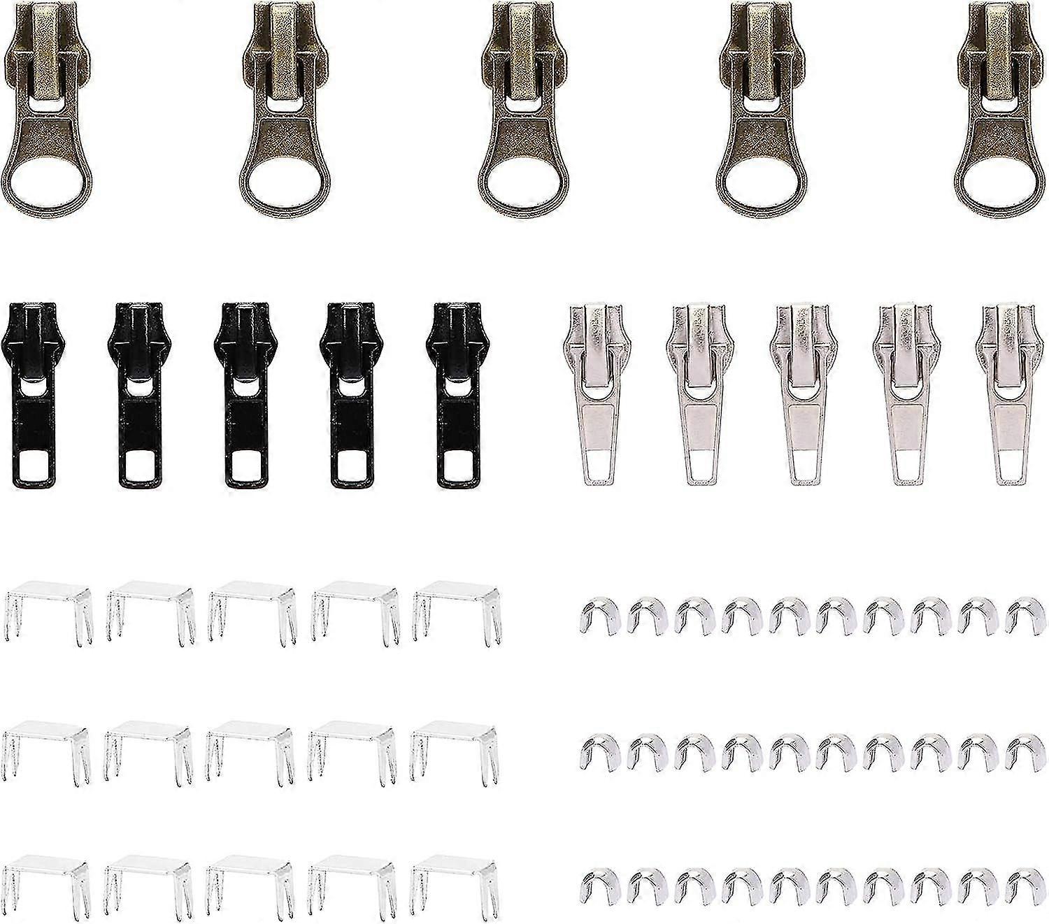 15 Pcs Zipper Pull Replacement Zipper Repair Kit, Premium Zipper Replacement Slider 5#, Fix Zipper Pulls For Bags Tents, Metal And Nylon Jacket Zipper