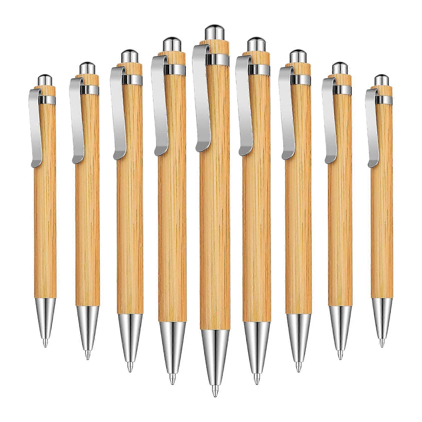 15 Pieces Bamboo Retractable Ballpoint Pen Black Ink 1 mm Office