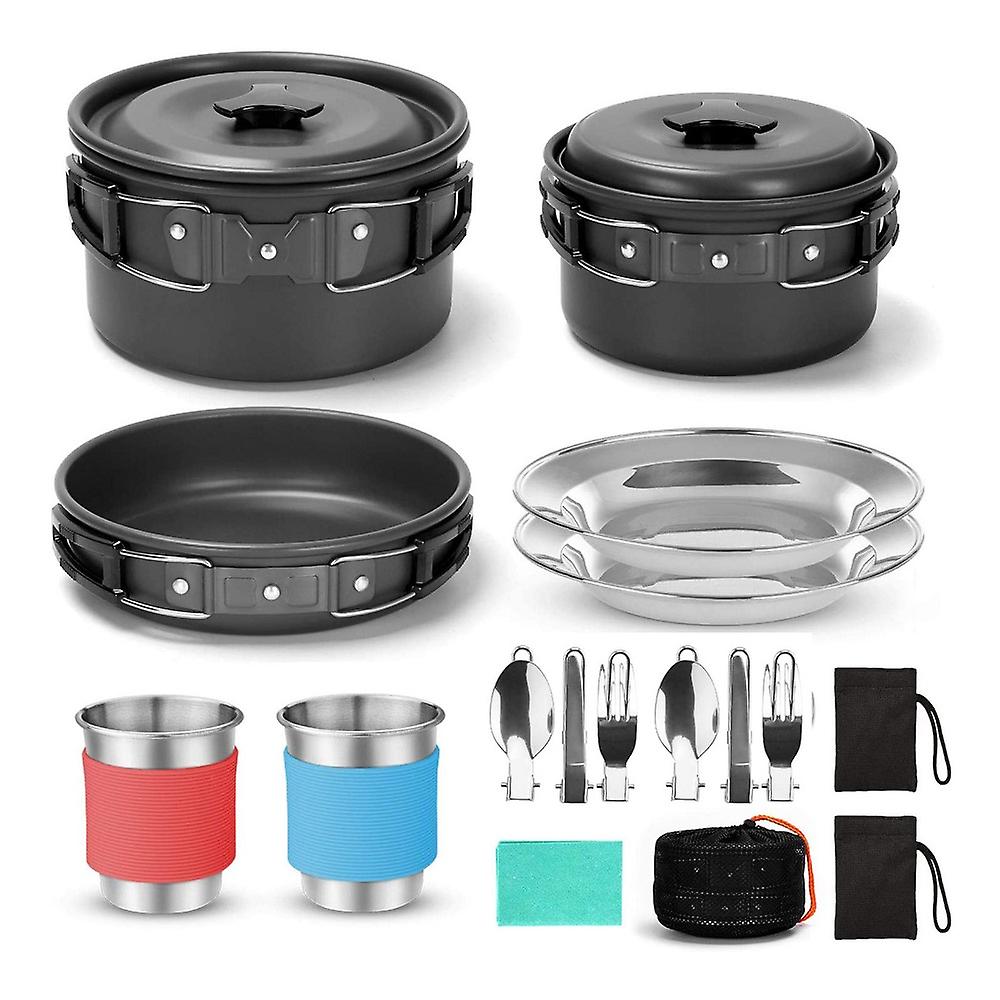 15pcs Camping Cookware Mess Kit Non-stick Lightweight Pot Pan Kettle Set With Stainless Steel Cups For Camping