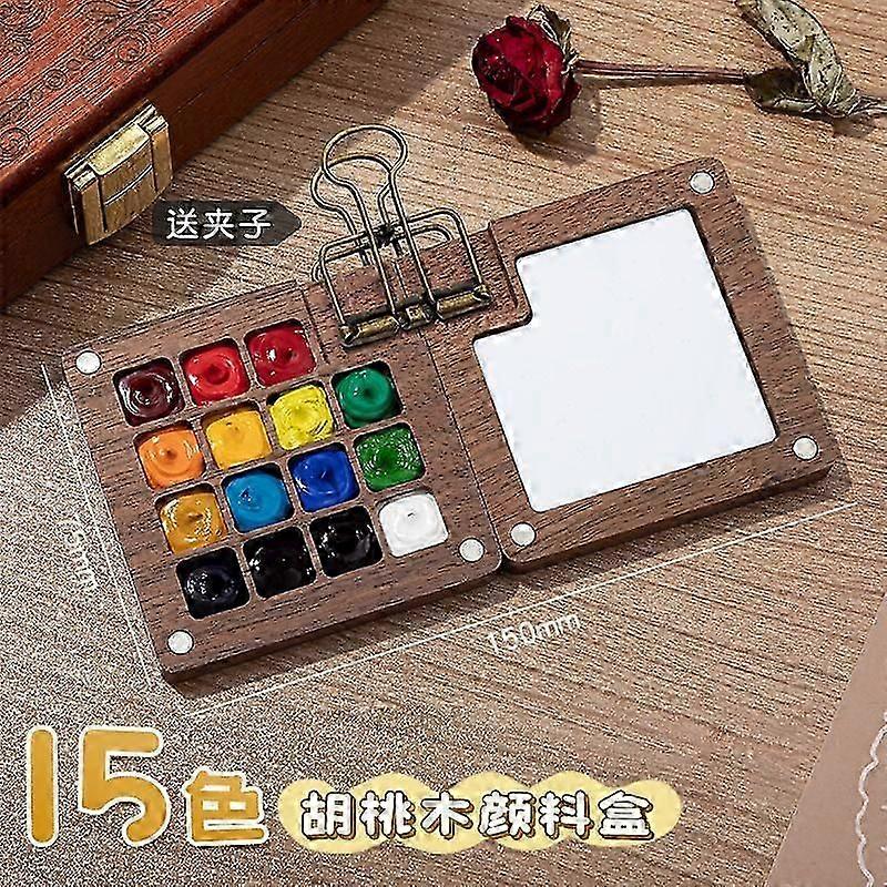 15 Grids Wooden Mini Palette, Foldable Portable Pocket Watercolour Palette with One Clip, Ultra Compact Travel Set for Beginners & Artists