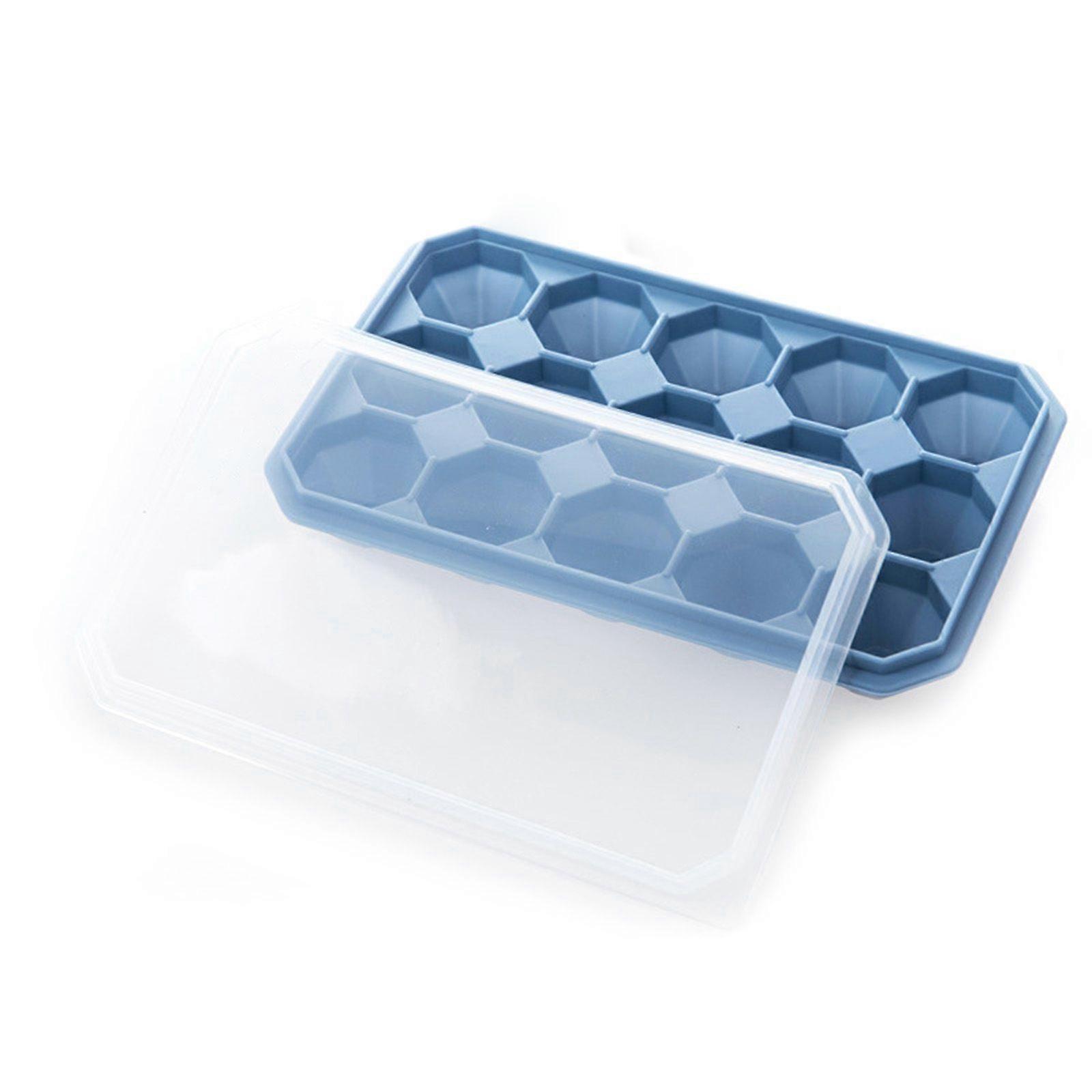15/24 Grid Diamond Shape Ice Cube Tray with Silicone Lid Stackable Ice Cube Mold