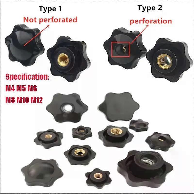 1/5pcs M4 M5 M6 M8 M10 M12 Female Thread Star Knob Handles Shaped Perforated / No Perforated Clamping Nuts Knobs