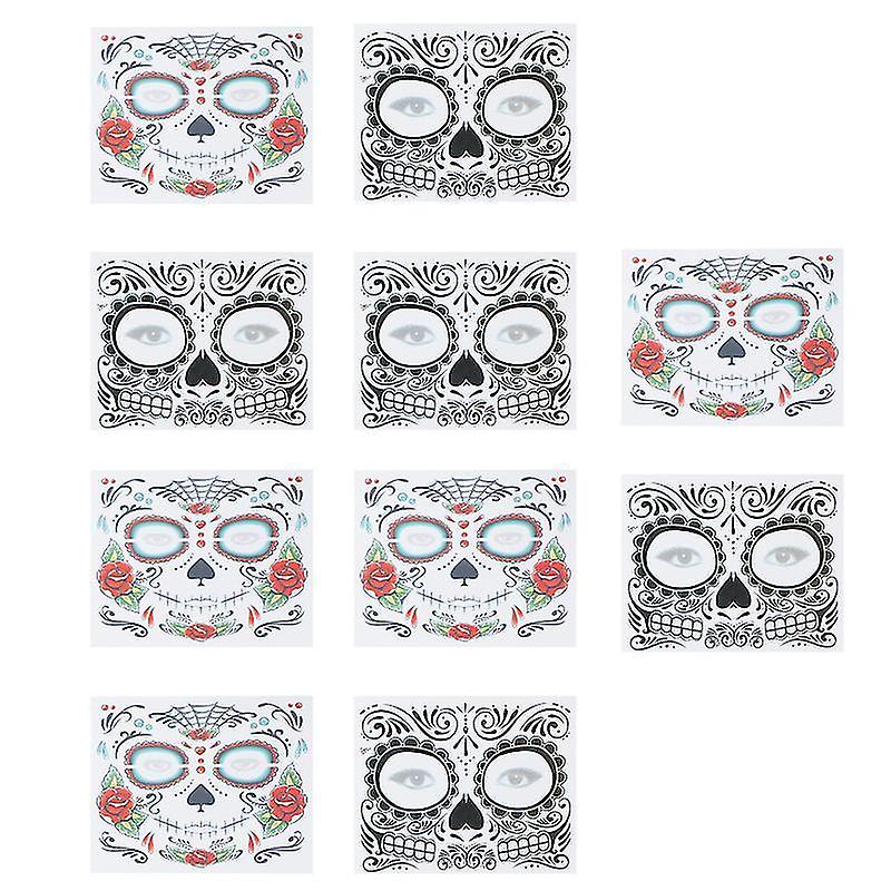 15X13x0.1cm White Temporary Tattoos 10 Sheets Halloween Face Decals Skull Stickers Face Tattoos Stic
