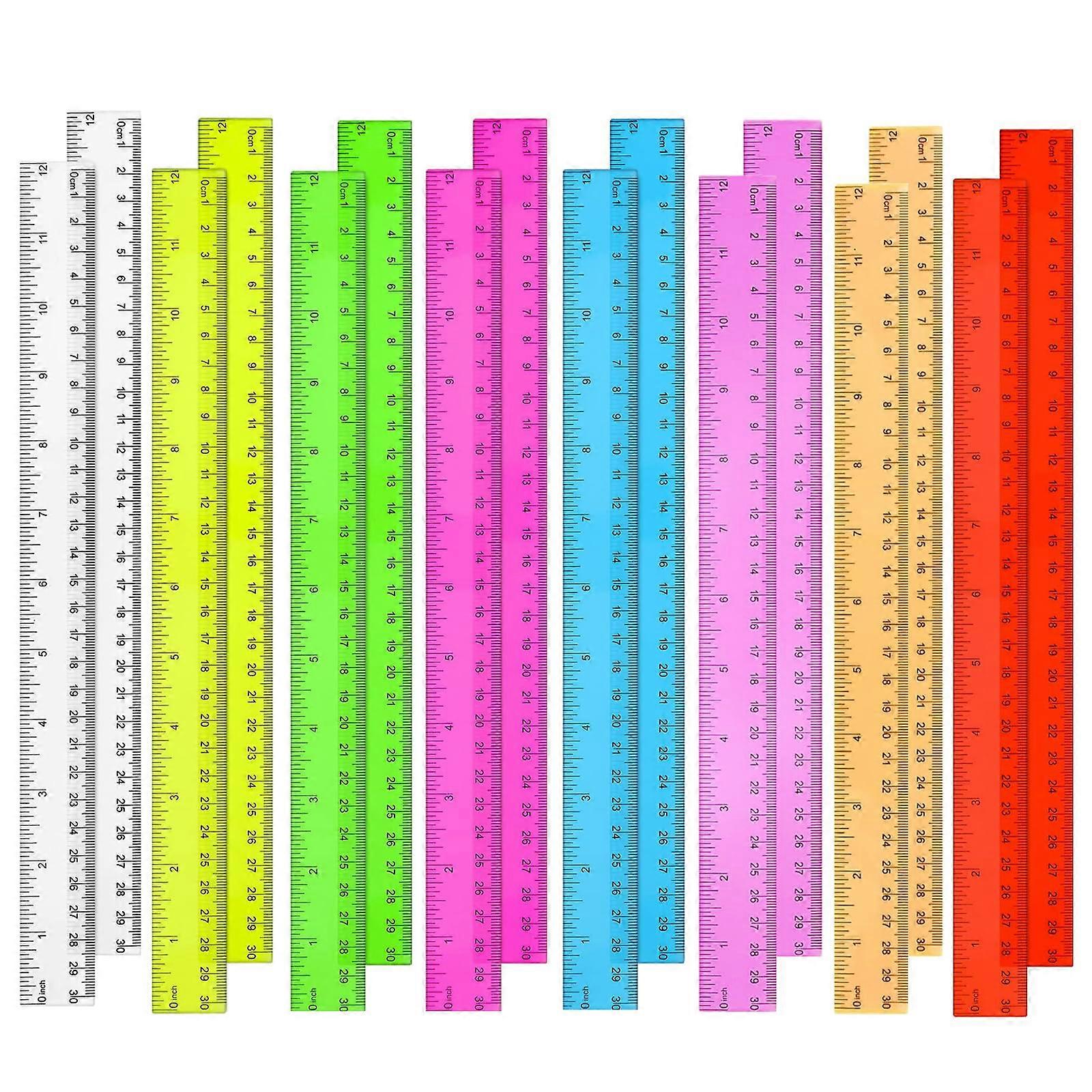 16支装透明塑料尺子,12英寸彩色学生尺套装,含英寸和厘米刻度,儿童学习用品,开学必备