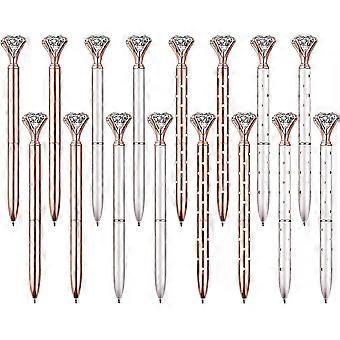 16 Pcs Bling Big Crystal Diamond Ballpoint Pen Metal Ballpoint Pensrose Gold/silver/white With Rose Polka Dots/rose Gold With White Polka Dots, Includ