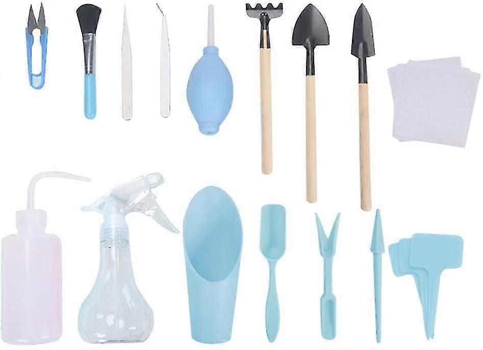 16 Piece Blue Succulent Plant Transplantation Tool Set Gardening Tool Set Mini Succulent Plant Garden Set Indoor Garden Plant Care Transplantation Too