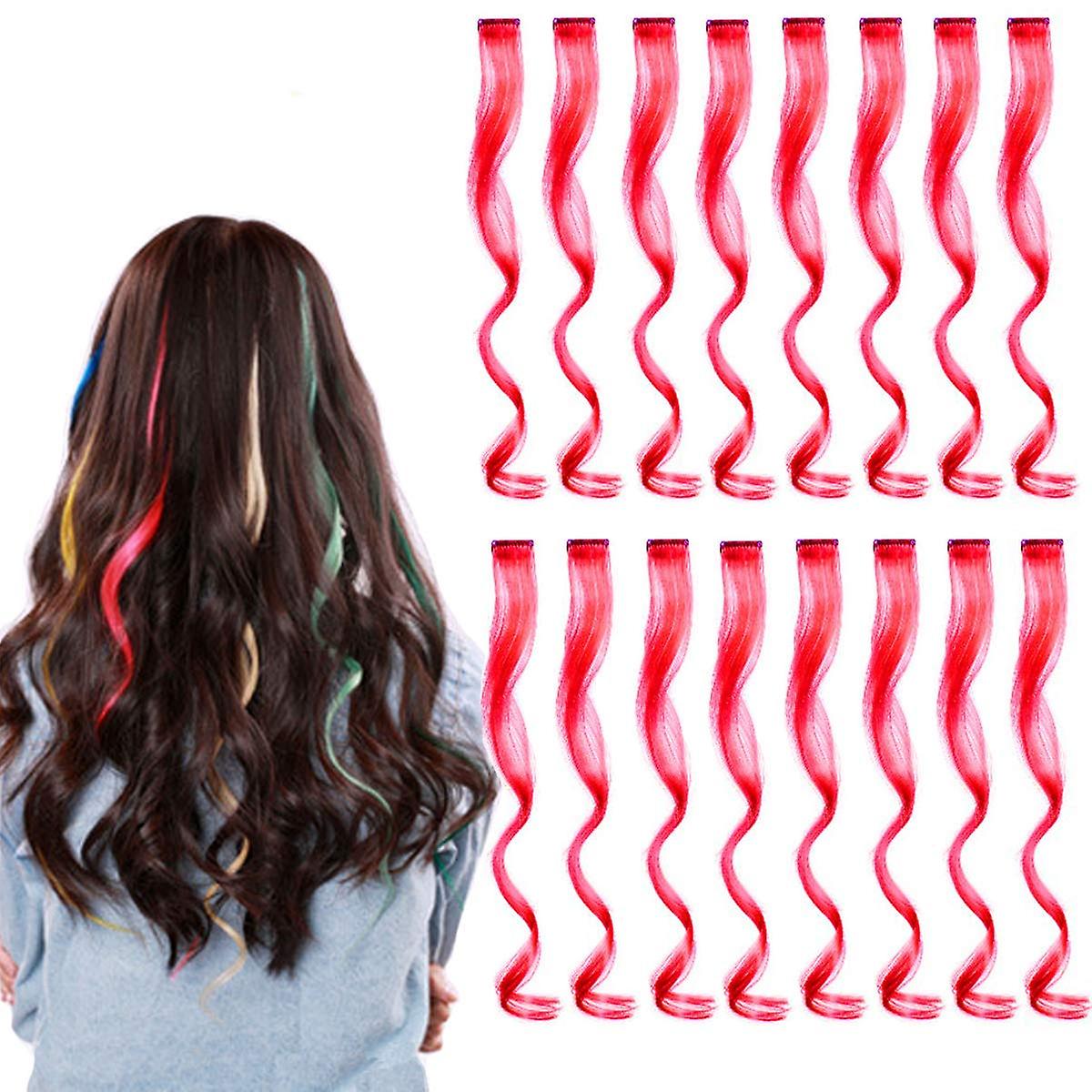 16 pcs Colored Clip in Hair Extensions 20 inch Red Heat-Resistant Long Curly Wavy Hairpieces Clip in Synthetic Halloween Cosplay Fashion Party Hair Ac