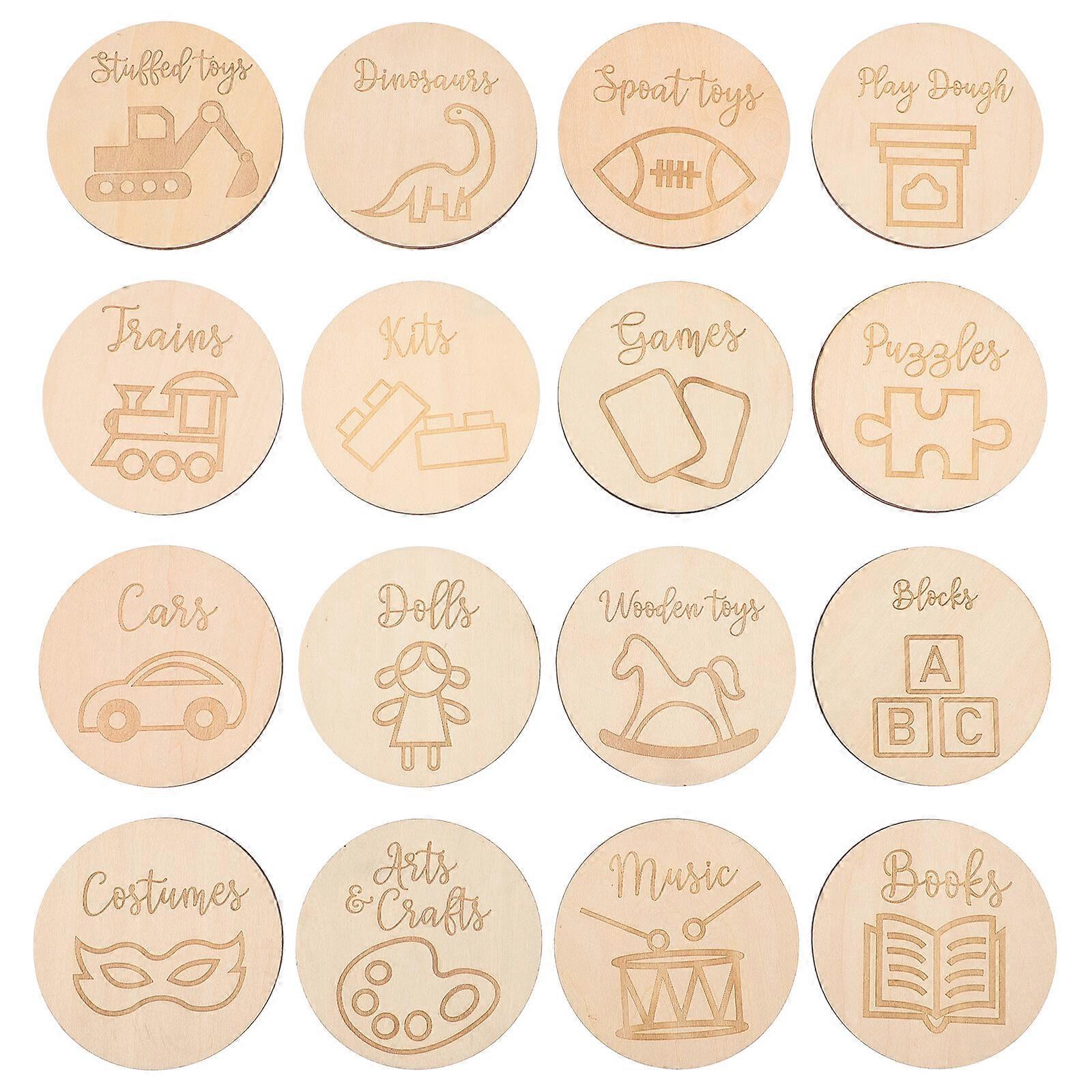 16pcs Round Wooden Tags Round Wooden Discs Wood Circle Ornament for Toys Box