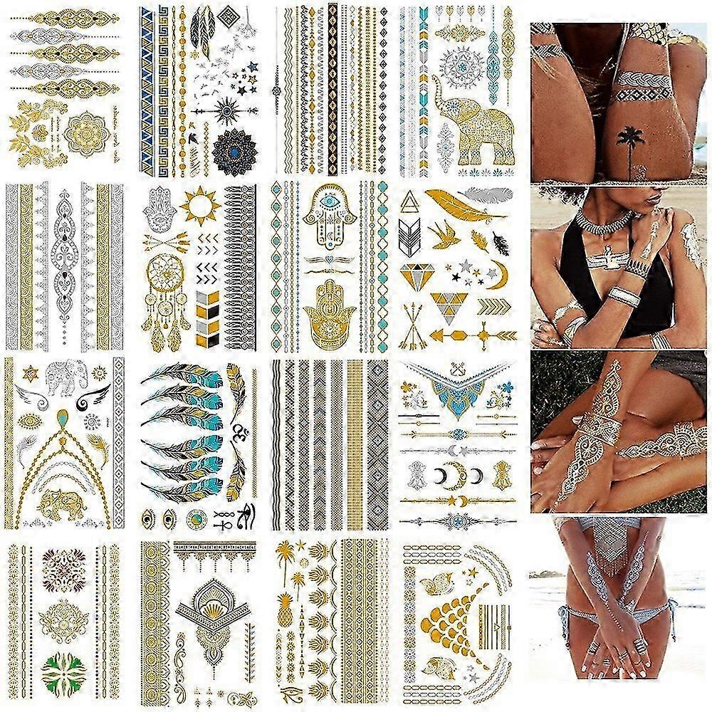 16 Sheets Metal Tattoo Stickers, 150+ Designs Metal Temporary Tattoo Stickers, Glitter Waterproof Fake Tattoo Stickers, Suitable For Adults Or Kids