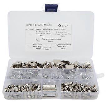 160pcs 6 Styles RV Shelf Pins Kit Nickel Shelf Support Pegs Cylindrical Pins Holder L Shaped Bracket for Cabinets