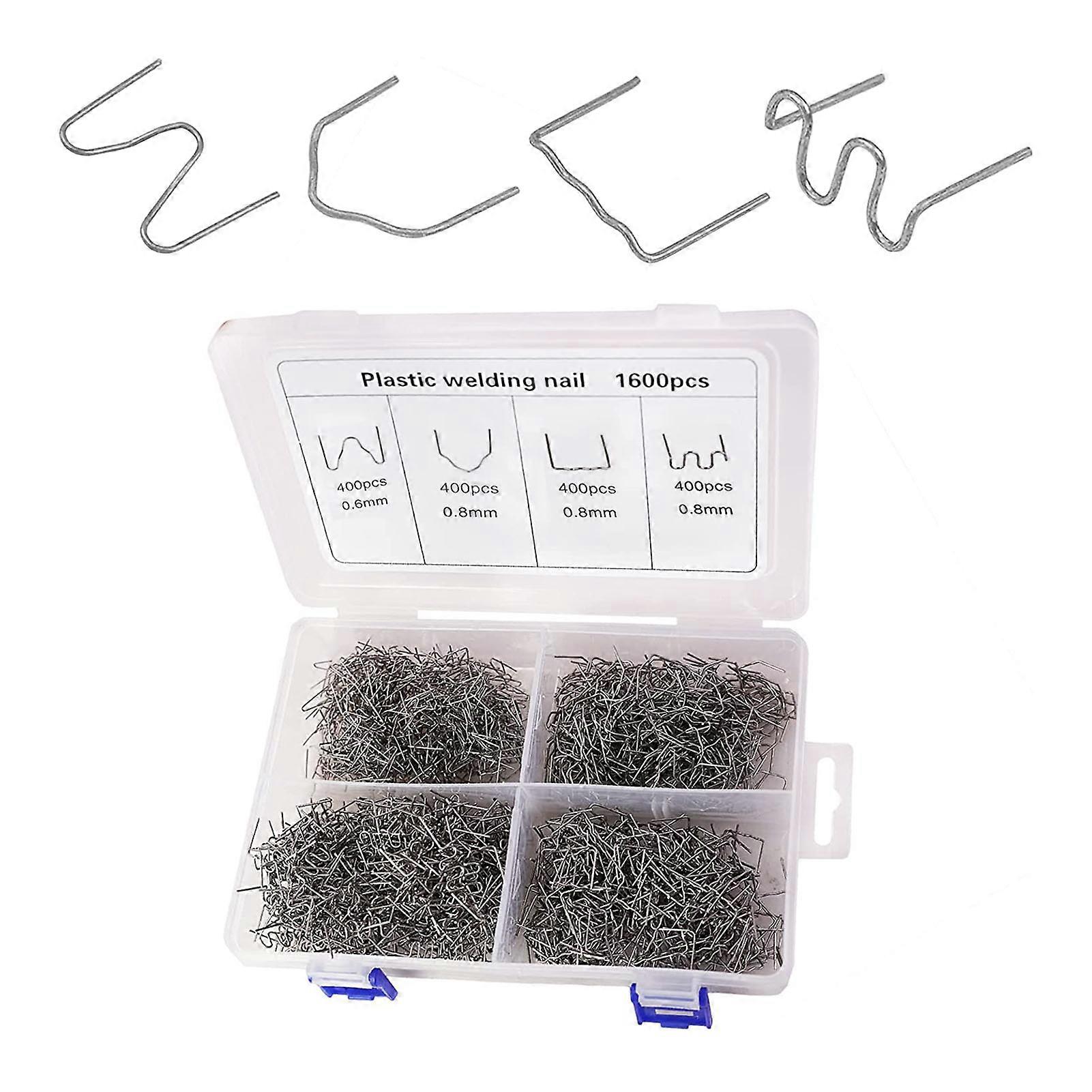 1600PCS Hot Staples with Storage Box, Plastic Repair Staples Wave Flat V M 4 Types for Automotive Plastic Repair Machine Welding