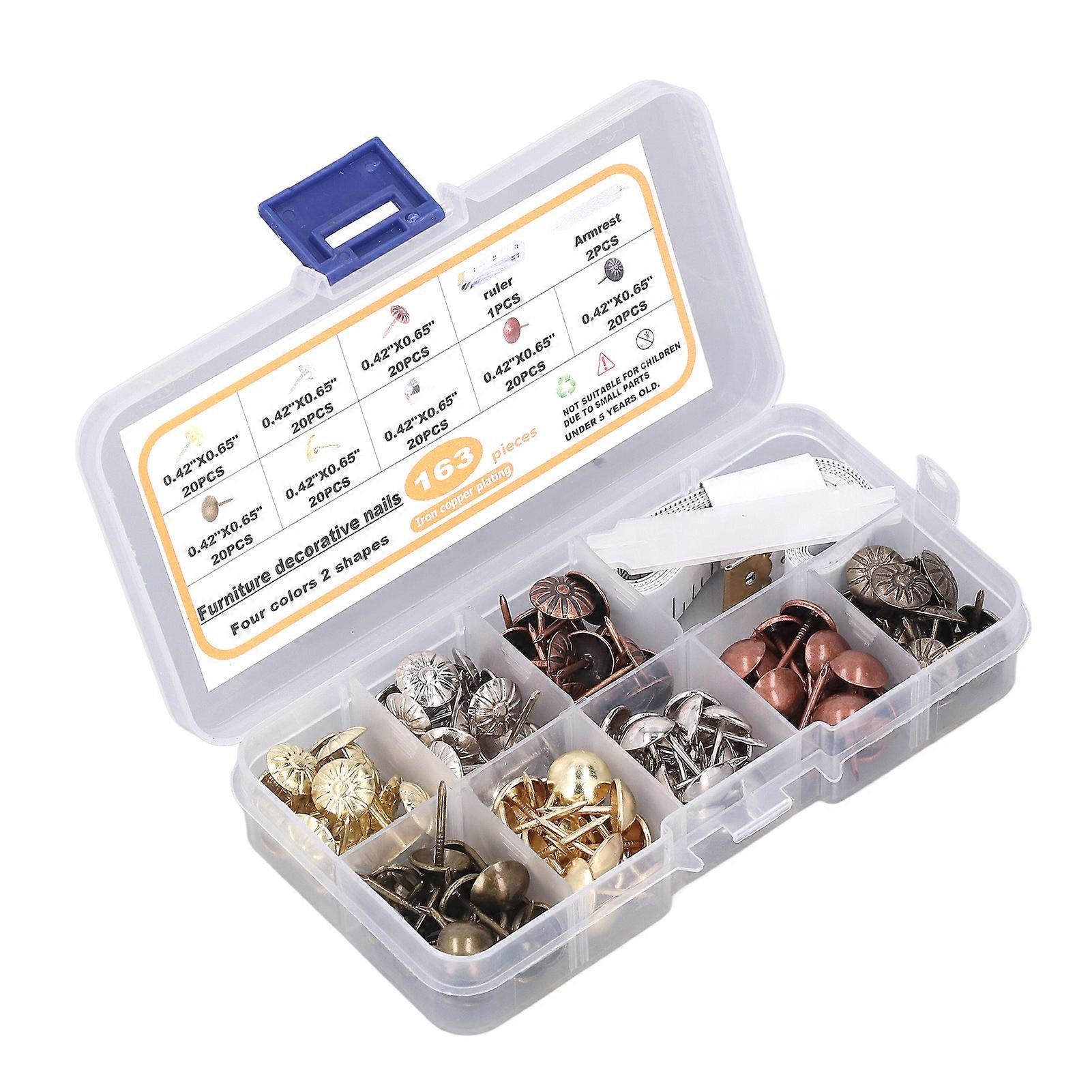 163Pcs Upholstery Tack Carbon Steel Rustless Corrosion Resistant Antique Decorative Nail for Furniture Painting
