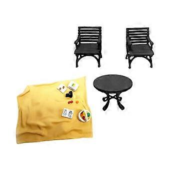 1/64 Miniature Figures Picnic Mat with Desk and Chair for Layout Desk Decor