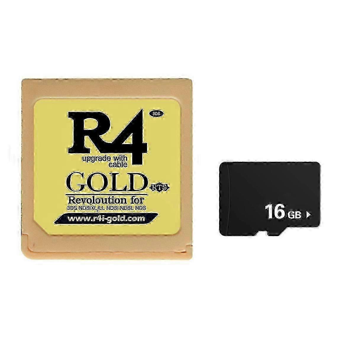 16GB R4i Gold Game Card for Nintendo DSi XL LL Lite NDSi NDSL Memory Card with AdapterBe the first to update the wood and be compatible with the latest games The world's first host system to support upgrade to V1.41 Compatible with all versions in different languages Supports DSL//LL/XL (available on series, requires B9S) DLDI automatic patching Support SDHC (Micro-SD 4G, 8G, 16G, 32G) Second generation storage device (no boot tools required) Embedded slot 1 card Use Micro-SD card, FAT16 or 32 Supports any Micro-SD card speed, no lag in gaming Support Clean ROM, drag and drop. Works with any Built-in no pass Automatically detect save type Save directly to Micro-SD card, not to onboard chip Supports Moonshell and other homebrew software. User-friendly skinning interface. Touch screen or button operation Support rumble pak and memory pak Support operation interface background changes Support skin DIY by manually and automatically setting the background and font color of the main menu and game menu Supports 4 levels of brightness adjustment ( Lite only) Support soft reset. moonshell 2.10 supports Software Reset function (press START key to return to R4 menu Due to different batches, there may be differences in product appearance, color, and printed text, which will not affect the use. Colour:gold Material:ABS Package Contents: 1 x Game Card 1 x 16G Memory Card Only the above package content, other products are not included. Note: Light reflection and different displays may cause the color of the item in the picture a little different from the real thing. The measurement allowed error is +/- 1-3cm.