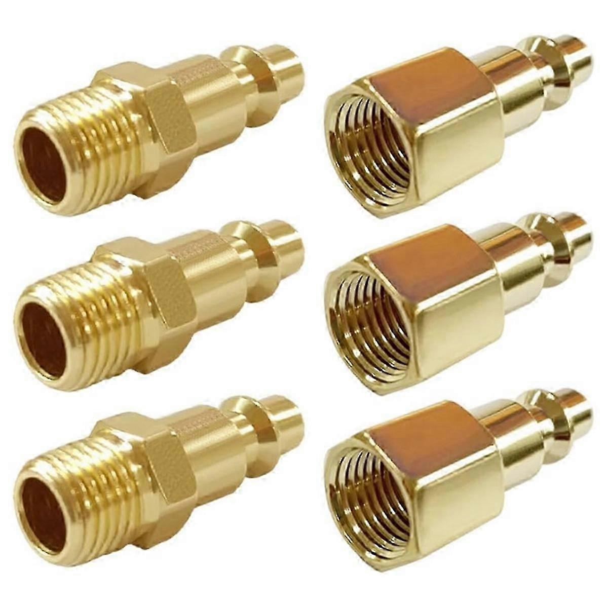1/8 Inch NPT Female&Male Brass Industrial Air Hose Connect Plug, 6PCS Air Compressor Pneumatic Coupler Fitting Adapter