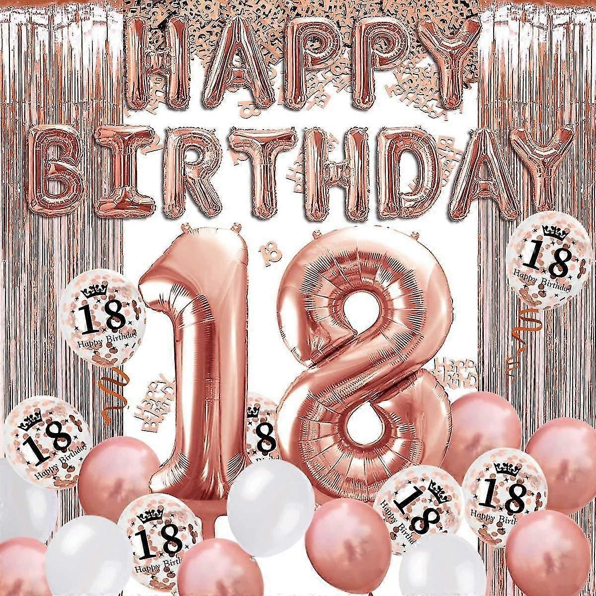 18 years pink gold birthday deco, happy birthday banner, helium balloon numbers 18 XXL, pink gold fr
